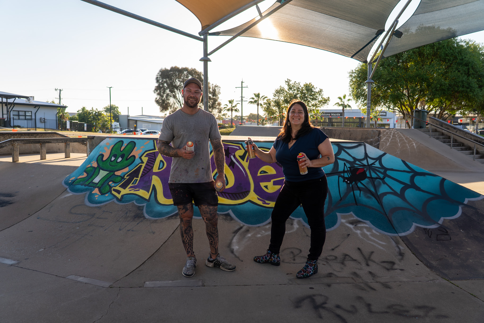 The PCYC Skate Park has had a facelift thanks to the designs of local young artists and the skills of graffiti artist Morris Green!