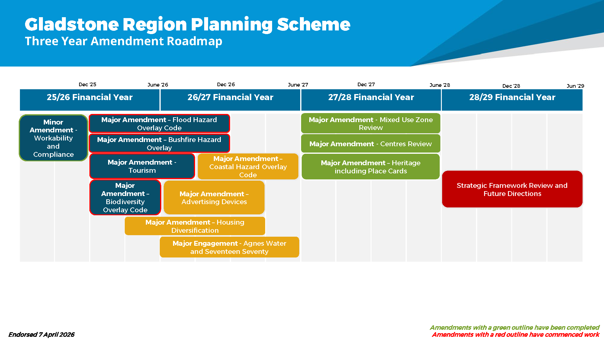 Both Major and Minor Amendments to the Planning Scheme must follow the legislated process contained in the Planning Act 2016 and Minister’s Guidelines and Rules.